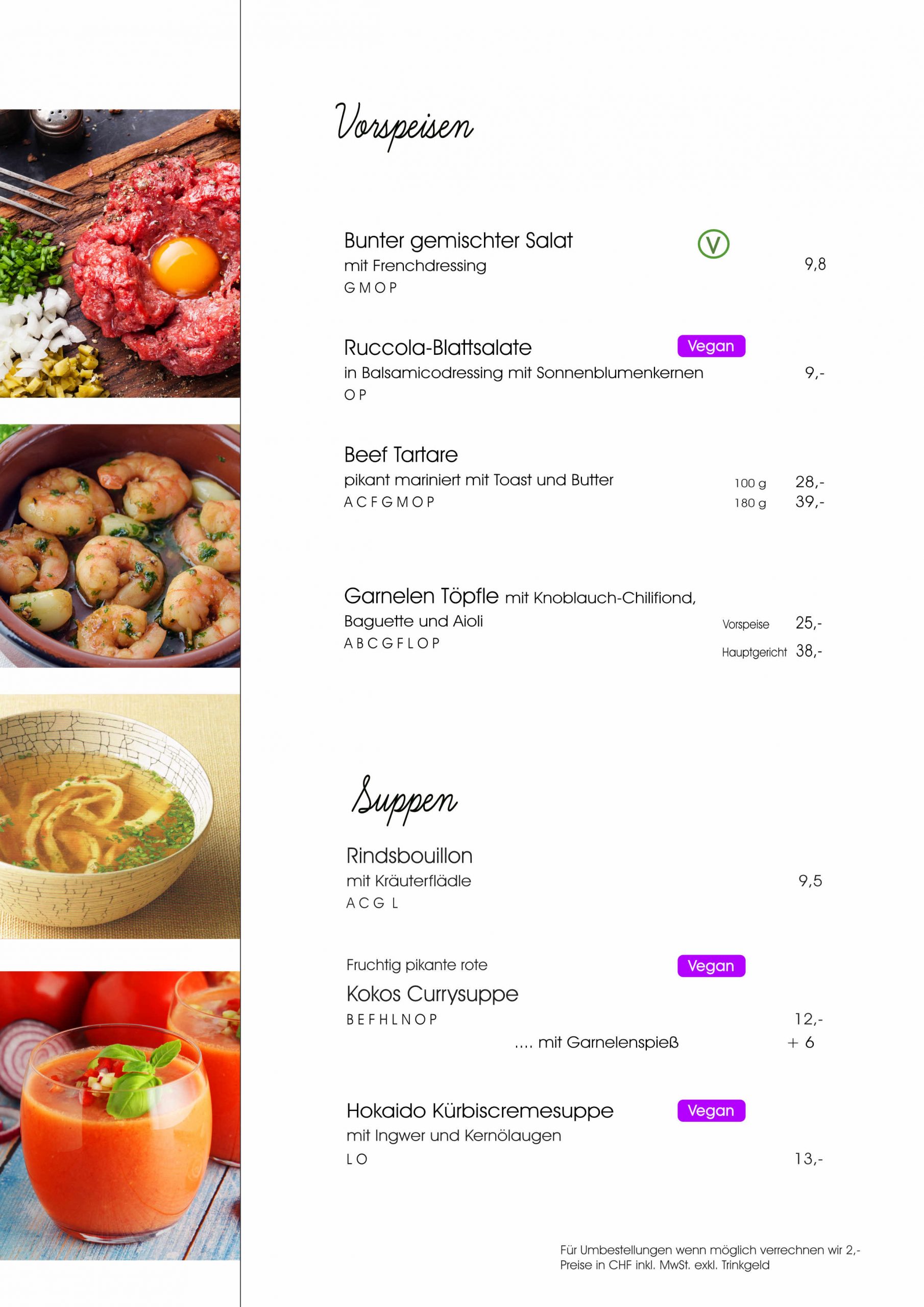 Die neue Herbstkarte präsentiert eine Auswahl an Gerichten, bei denen sowohl Fleischliebhaber*innen als auch Vegetarier*innen und Fischfreund*innen voll auf ihre Kosten kommen. Dank transparenter Allergenkennzeichnung ist auch für besondere Ernährungsbedürfnisse gesorgt.